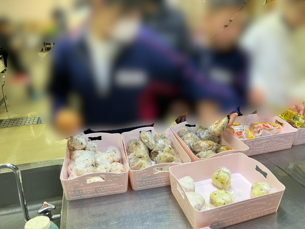 夕飯はボランティアさんの握ってくださったおにぎりです。
