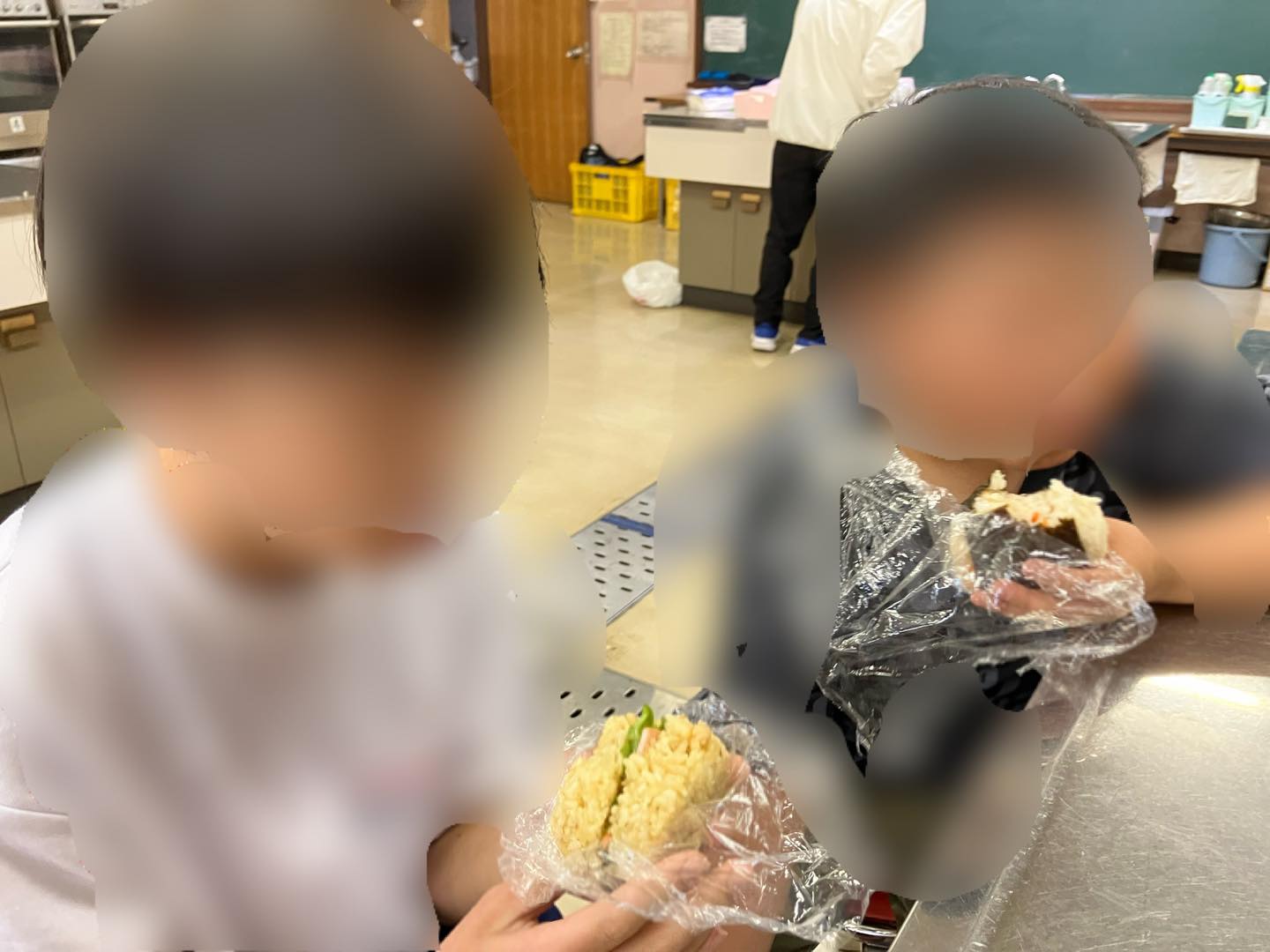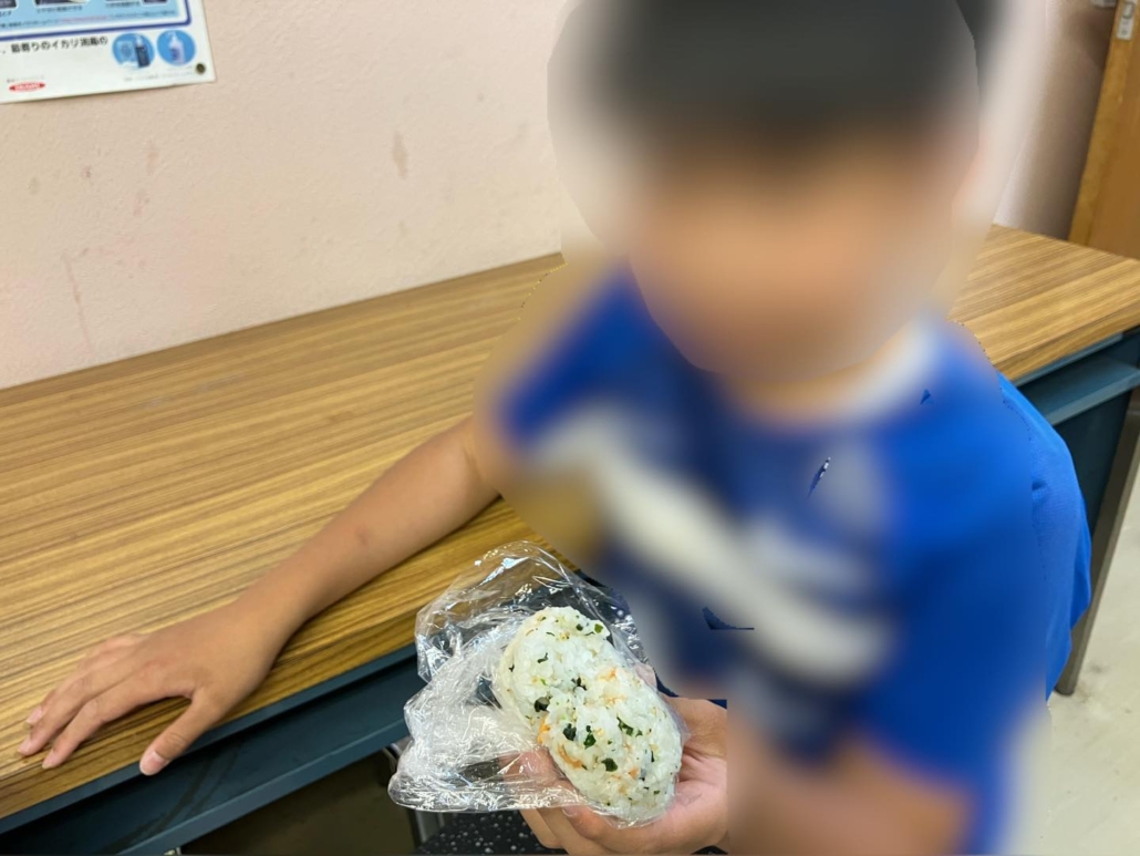 夕飯はボランティアさんが準備くださったおにぎりやどら焼きです。いろんなおにぎりをそれぞれ手にして、美味しそうに食べていました。美味しいおにぎりが子どもたちの元気の源になっています。ボランティアさんのご協力がありがたいです♪