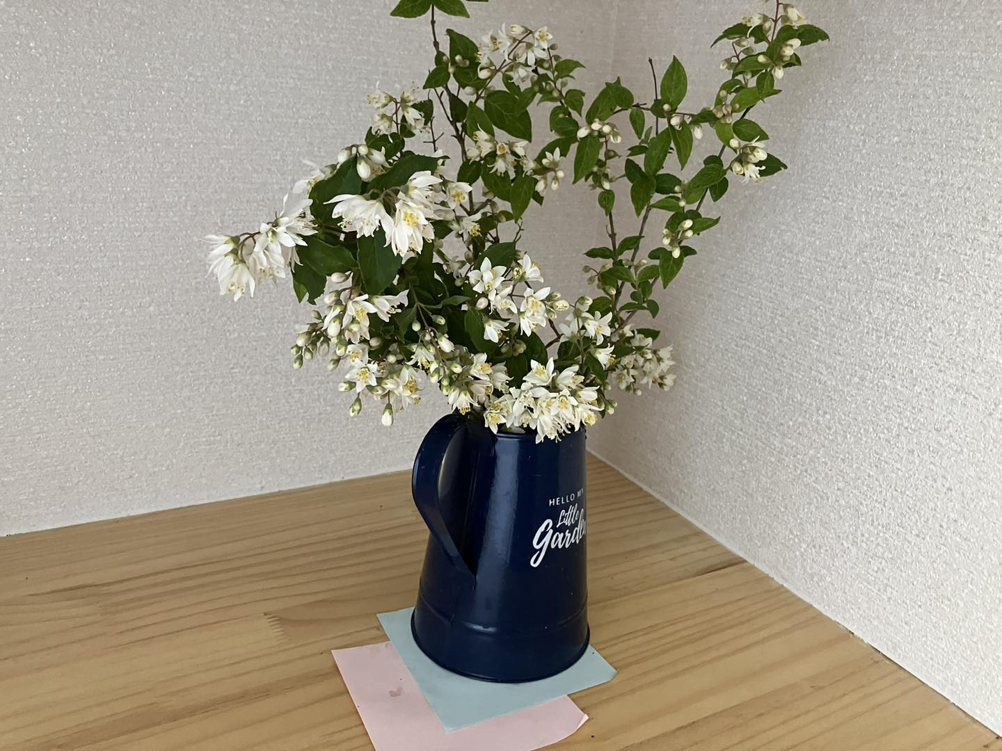 卯の花をカフェ・ロベの玄関に飾りました。白い花をわさわさ咲かせています。