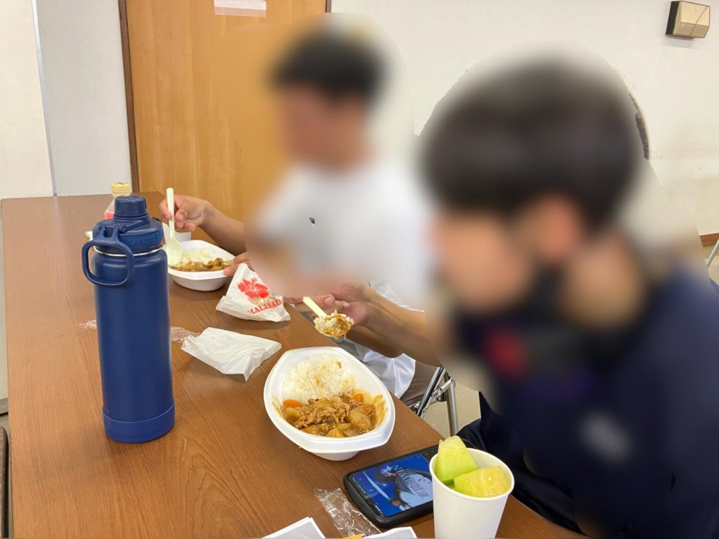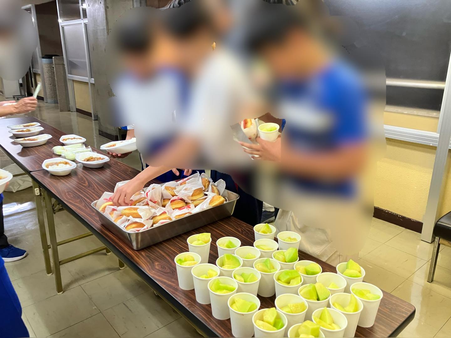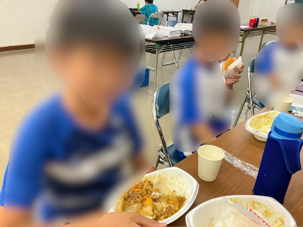 夕飯はひまわり食堂様の作ってくださったカレーでした。デザートのメロンは農家さんよりご寄付いただきました🙇