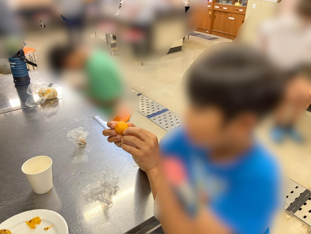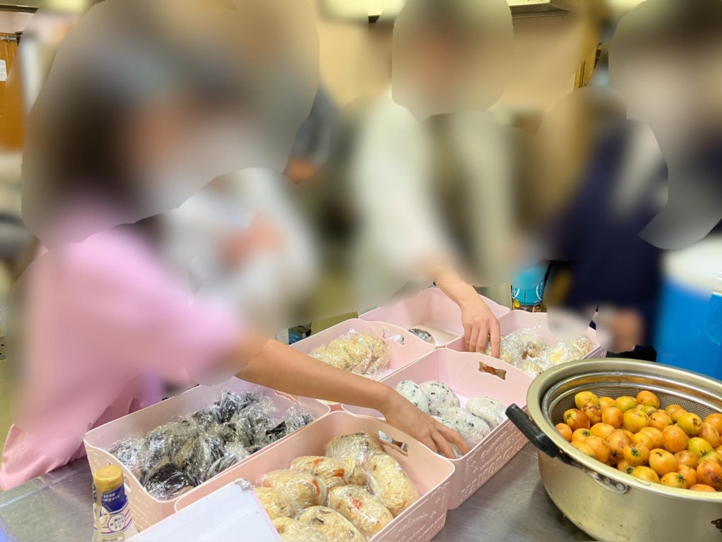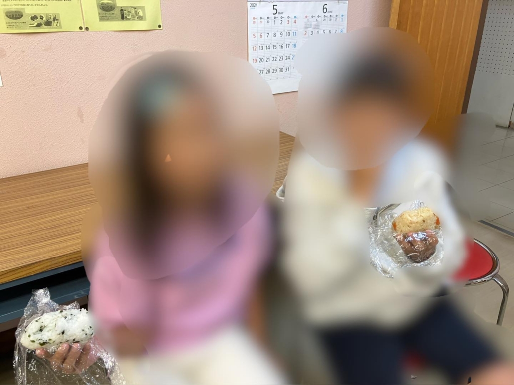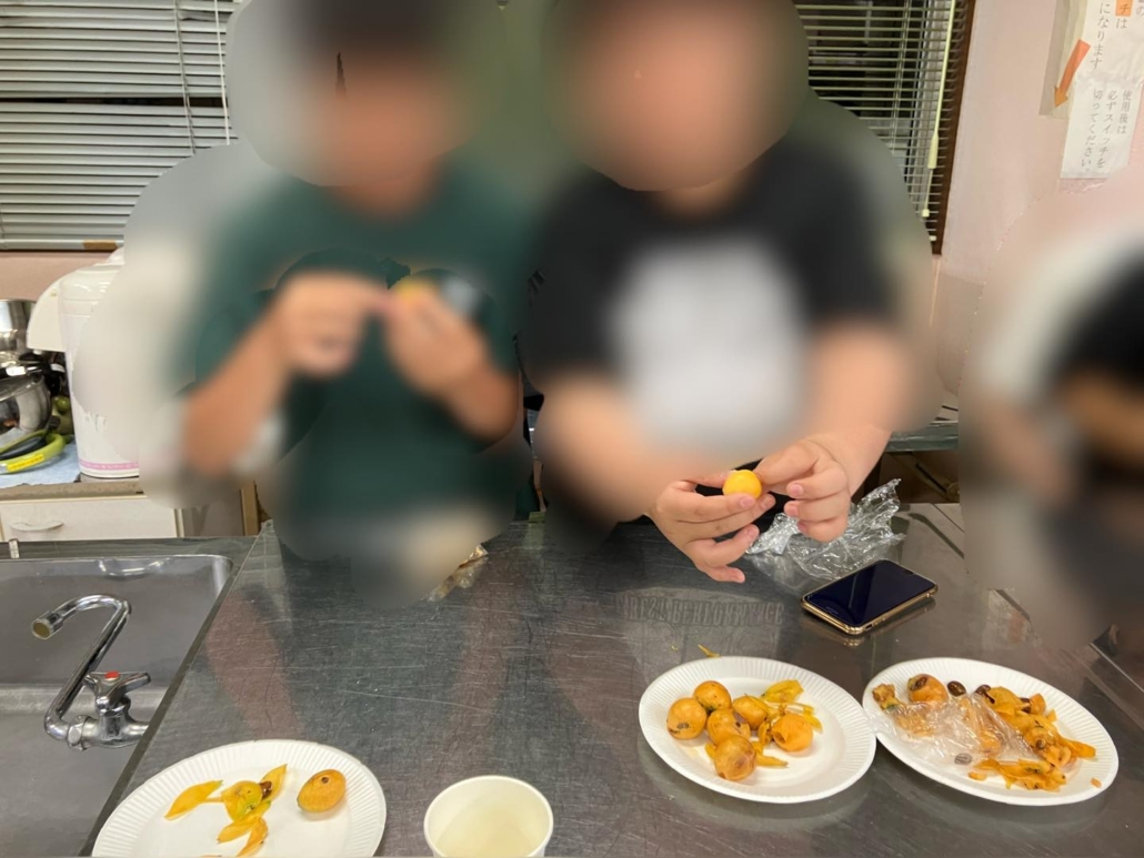 夕飯はボランティアさん手作りのおにぎりと枇杷でした。枇杷を食べるのが初めての子もいて、みんな皮を一生懸命剥いて食べていました。甘くて美味しかったようです。