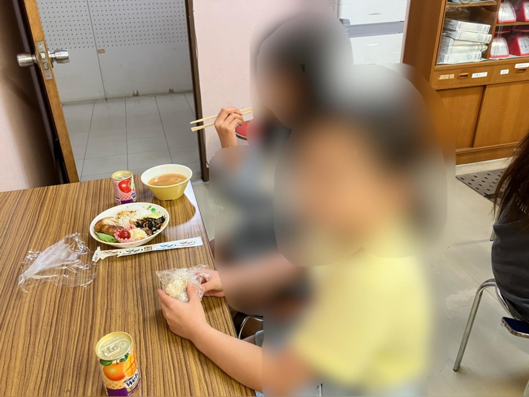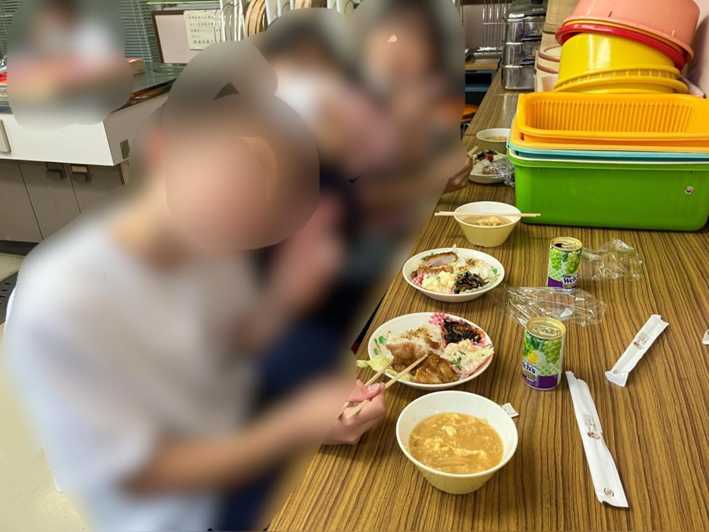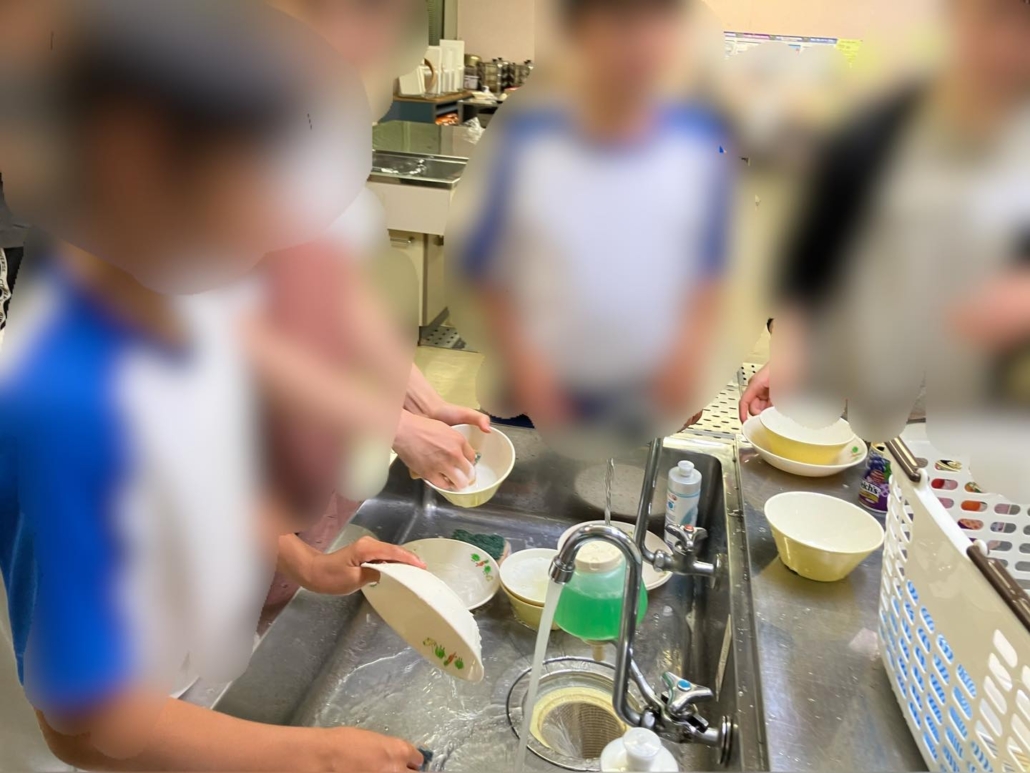 いつもは使い捨て容器に盛ってありますが、この日はプラ容器に盛ってありましたので、自分で使った容器は子どもたちに洗ってもらいました。
