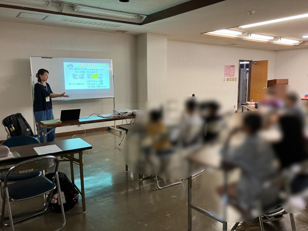 前半は学習に励み、後半は小峯先生による生きる力教室、マネー講座を開催いただきました。