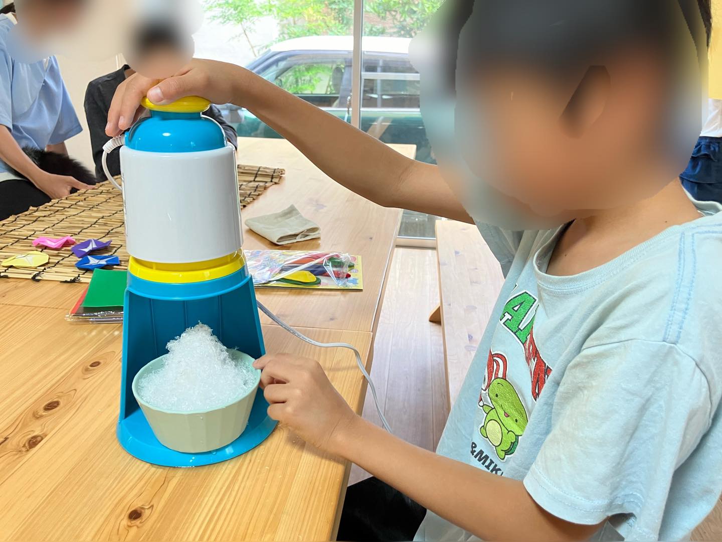 子どもたちは自分でゴリゴリかき氷を作りました。