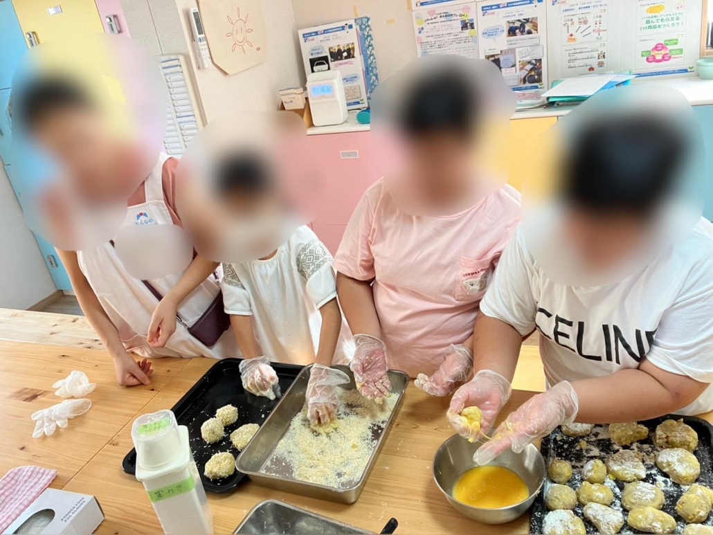 手間のかかる手作りコロッケも、みんなでやれば楽しいクッキング。自分たちで作ったコロッケはとても美味しかったようで喜んでいました。
