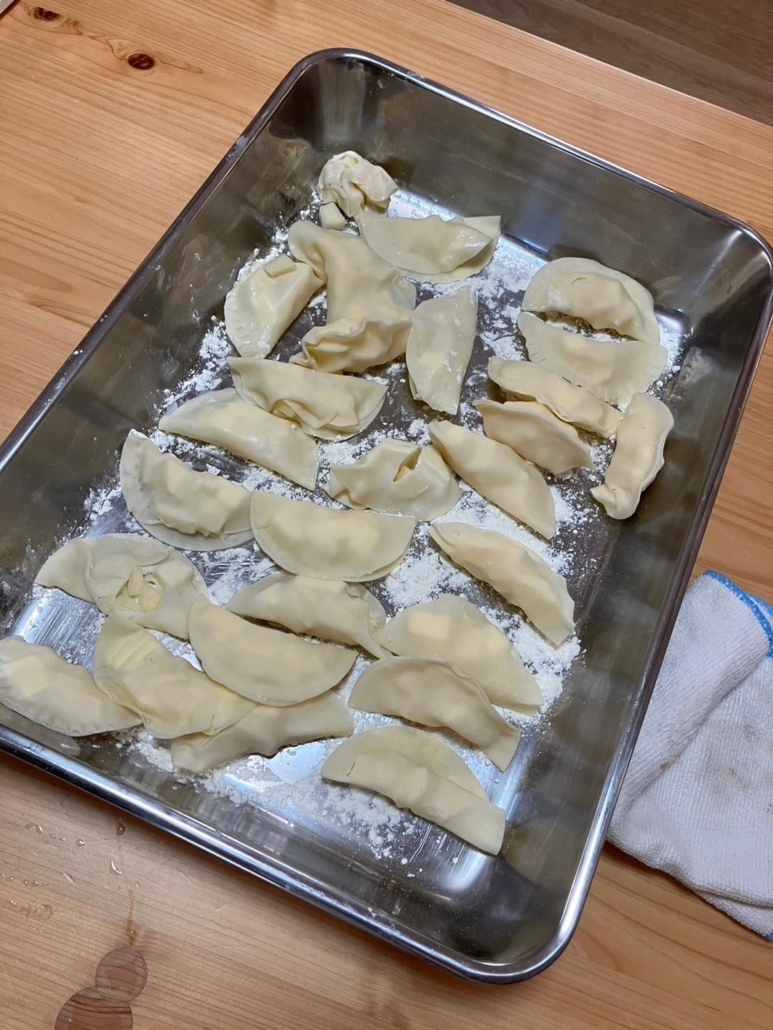餃子作り&アップルパイ作りを経験した児童たちは、始めはコーチの指示通り皮を包んでいましたが、