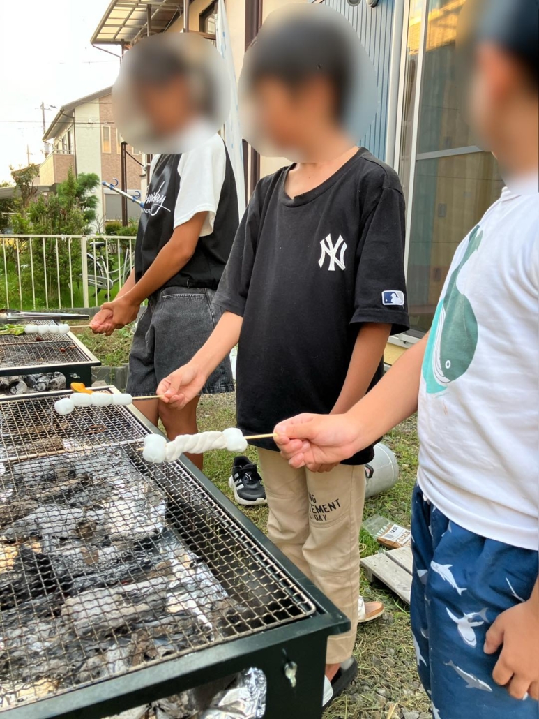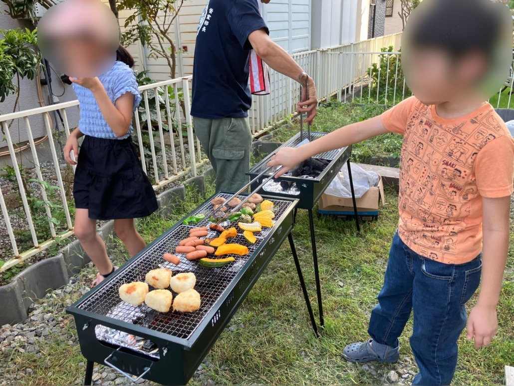 バーナーで炭に火をつけたり、焦げないようにトングで返したり、椅子を運んだり、子どもたちが手伝ってくれて頼もしかったです。