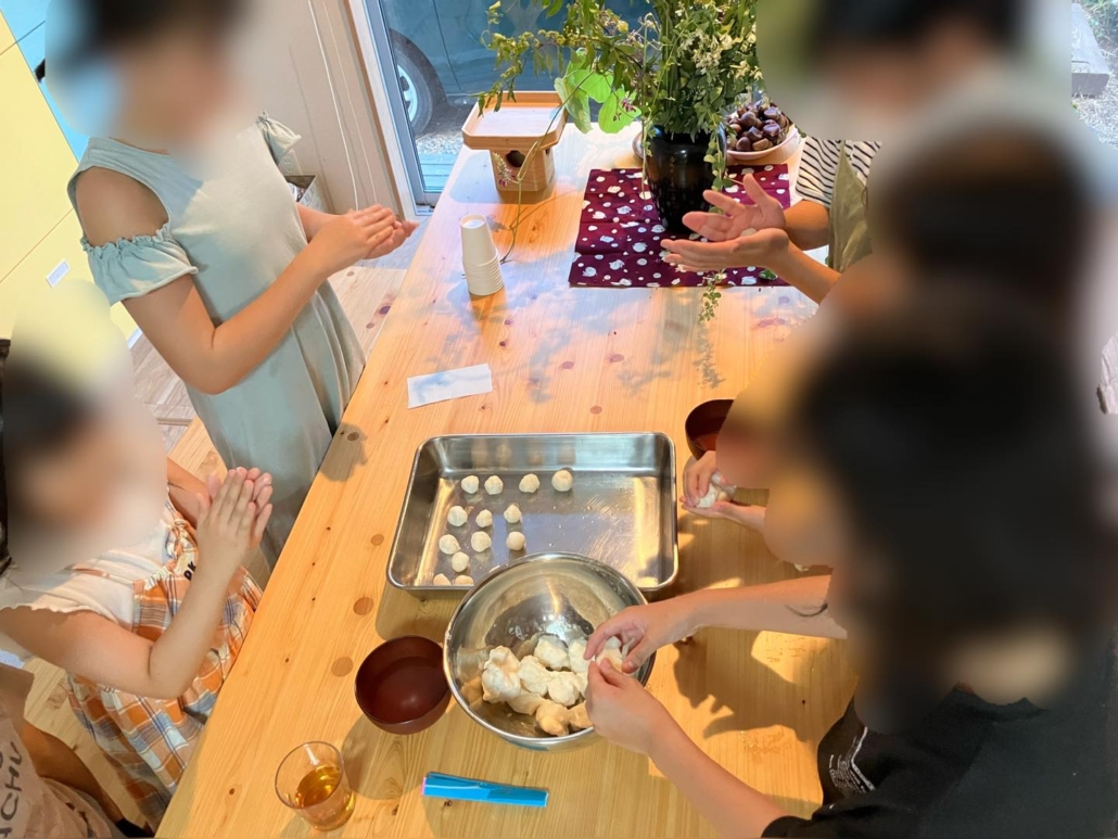 みんなでお団子作り、こーろころ。みんなが作ってくれたお団子はもちもちのきな粉餅でいただきました。