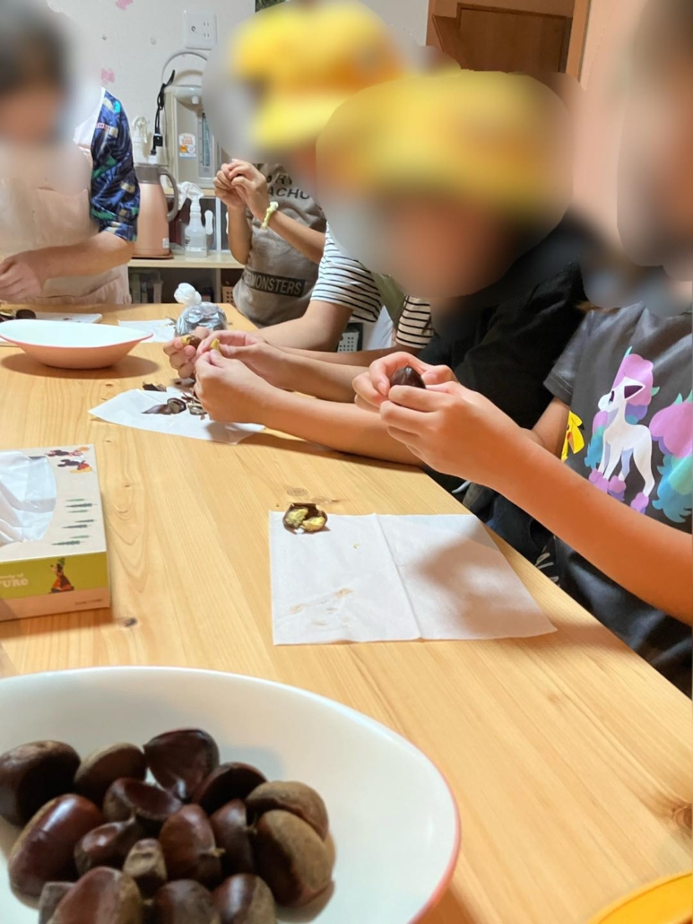 茹でた栗をみんなでいただきました。まだまだ暑いですが、秋はやってきています。