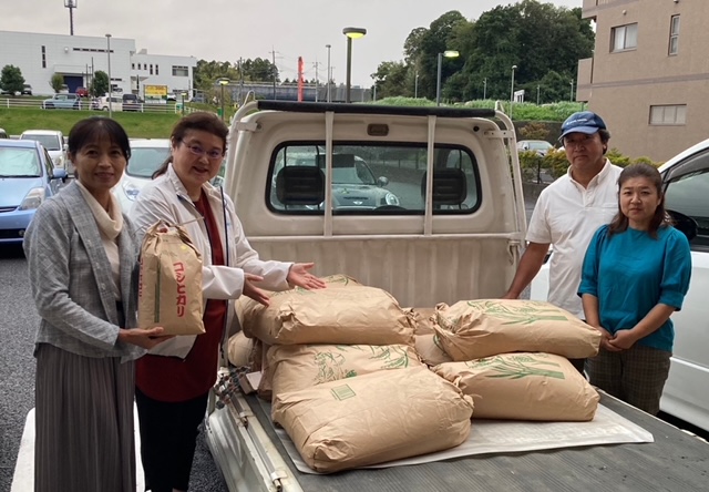 茨城大学農学部様及びコマツ様からの新米30キロ×5袋ありがとうございました。