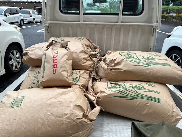 茨城大学農学部様及びコマツ様からの新米30キロ×5袋ありがとうございました。
