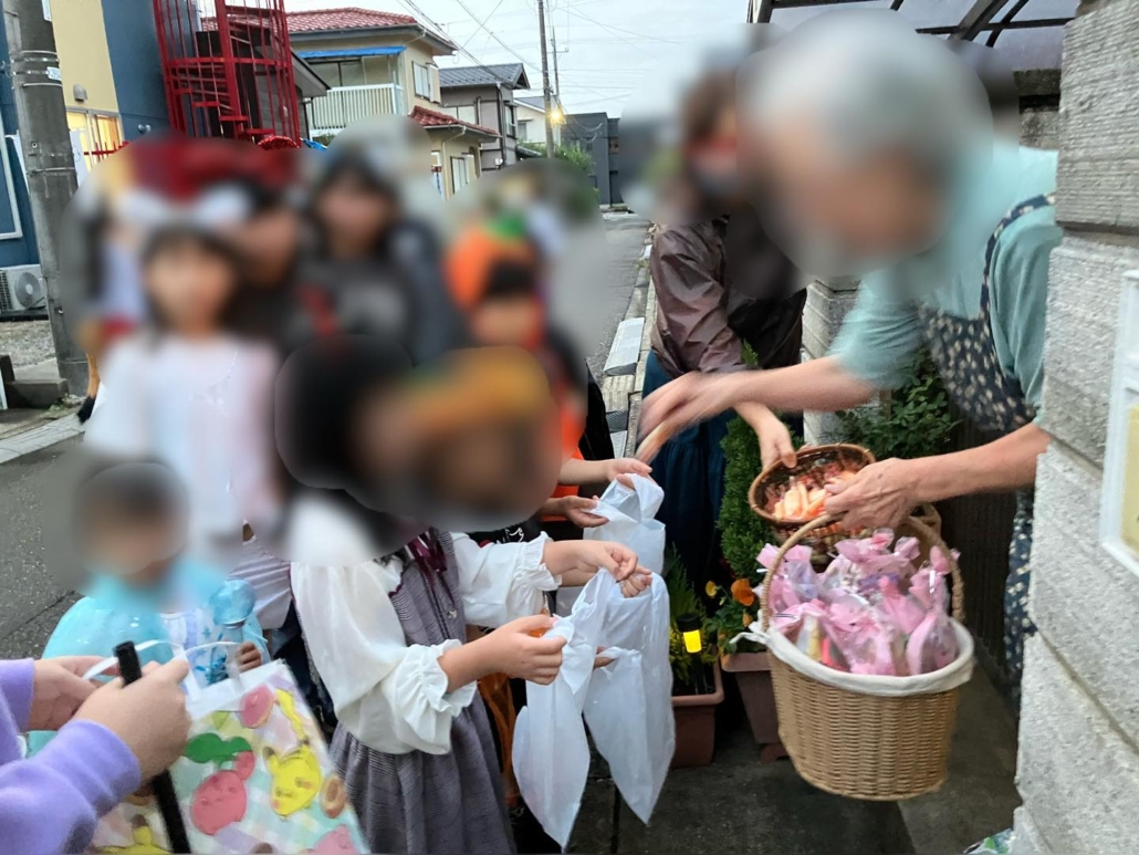 今回もご近所の方々がご協力くださり、お菓子を子どもたちに配ってくださいました