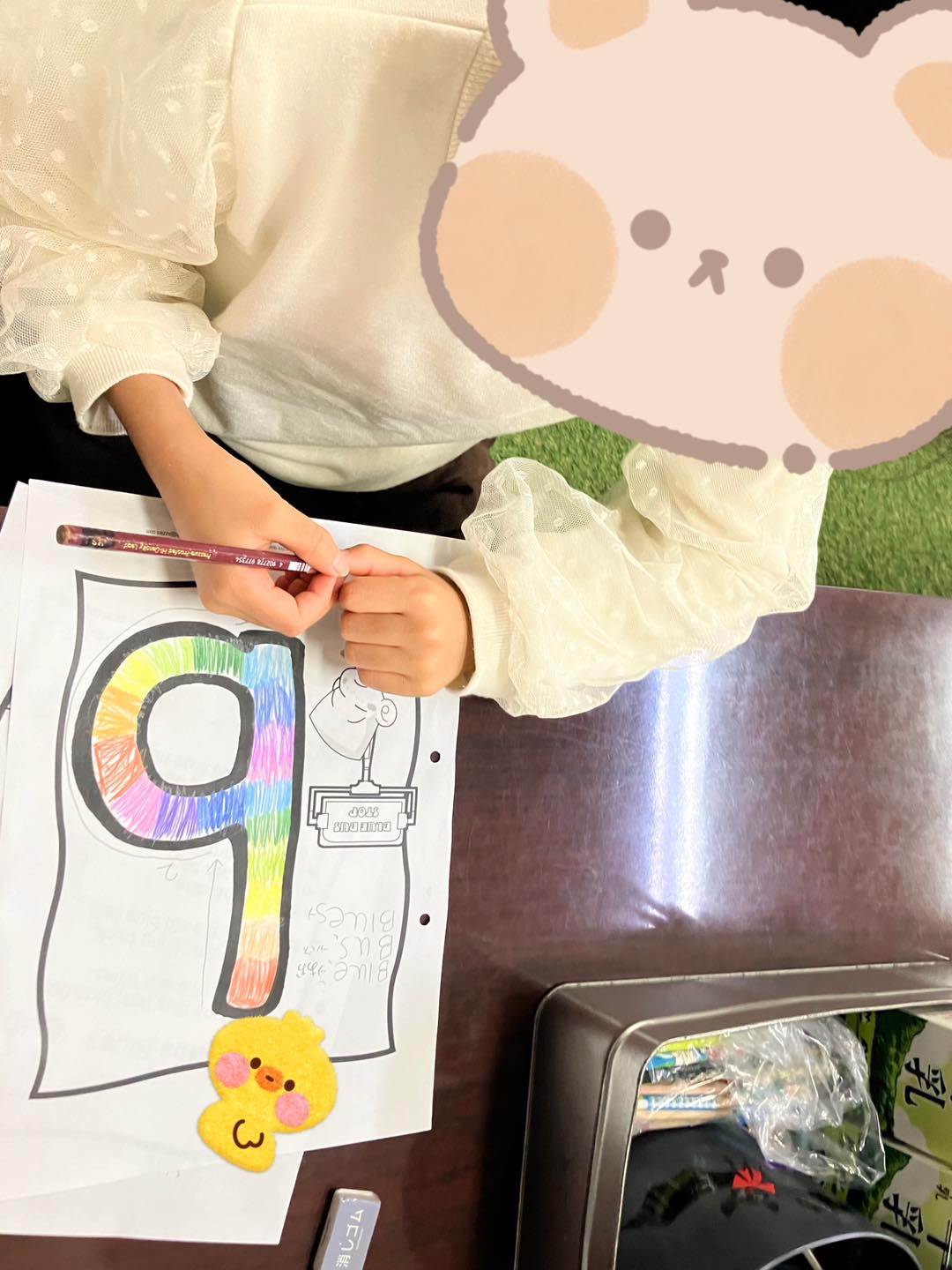 最初は乗る気ではなかった児童も、勉強するうちに楽しくなってきたのか紙一面に、今回学習したスペルの「b」を書いていました