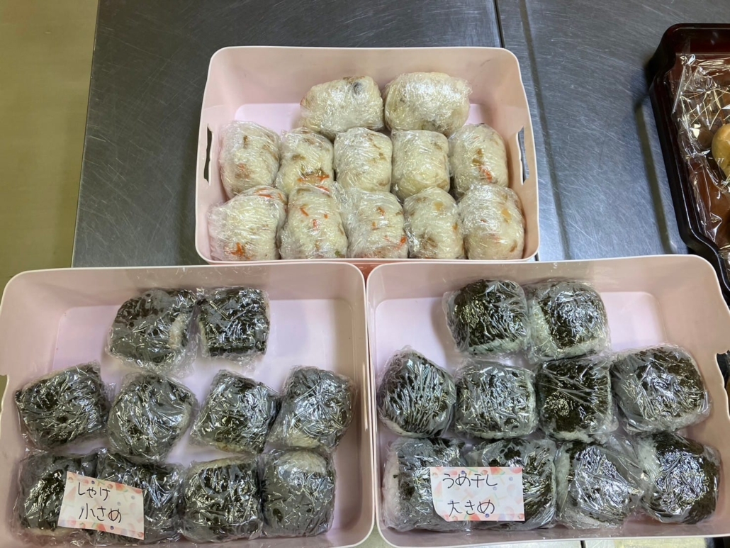 ご飯はおむすび隊様おにぎりとパン、元むすび支部の方におにぎりを届けて頂きました。