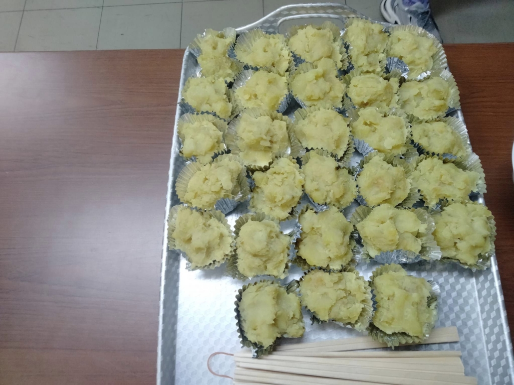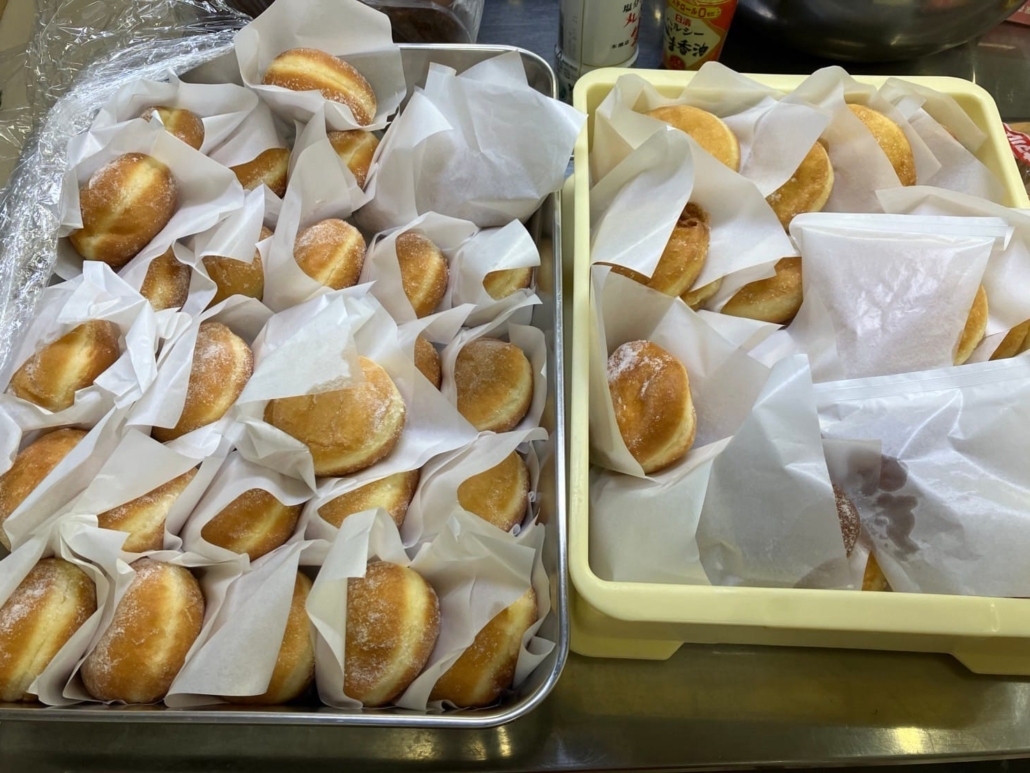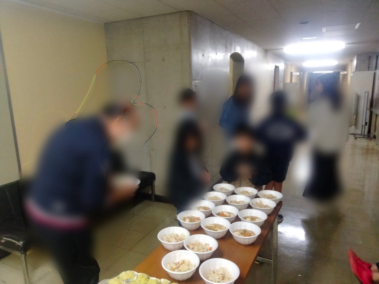 ご飯はひまわり食堂様のかしわご飯、豚汁、栗きんとん、パンをご準備頂きました。