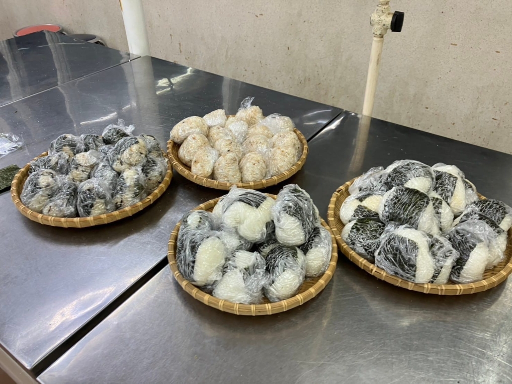 ご飯はTABEROBE様によるおにぎり。美味しく頂きました何時もご支援ありがとうございます。