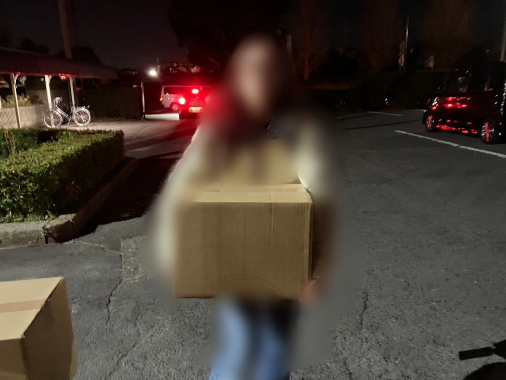 この日も肌寒い中の学習会。駐車場にてフードバンクの引き渡しもありました。