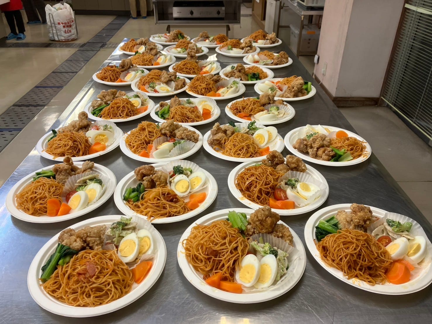 ご飯はGチェリー様によるスパゲッティ、唐揚げ、ホワイトシチュー。大人でもびっくりなボリューム。
