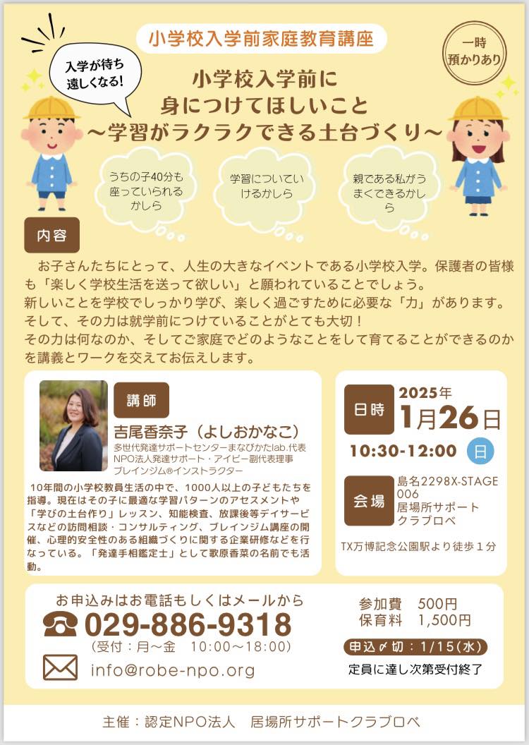2025年1月26日(日)会場”島名2298X-STAGE006 居場所サポートクラブロベ”にて、教育講座を行います。