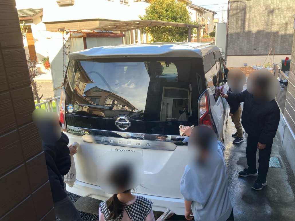 日頃送迎でお世話になっている車の清掃、窓掃除を子供たちがしてくれました