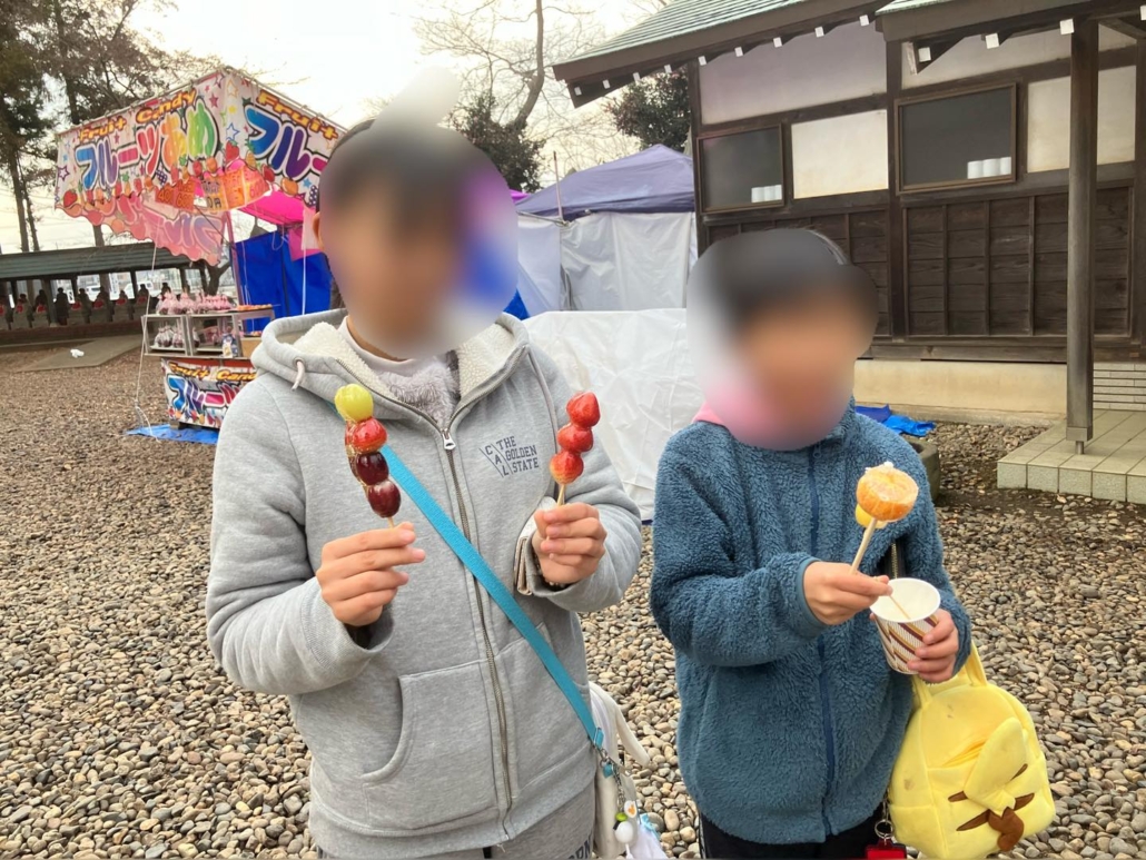 手を合わせて参拝したあとは、屋台で買い物したり、おみくじをひいたりと楽しみました