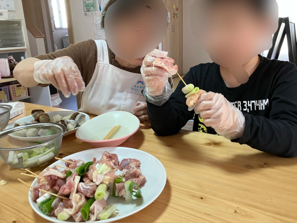 子どもたちは調理手伝いで具材の串刺しをしました。自分で作ると一段と美味しく感じるものです。