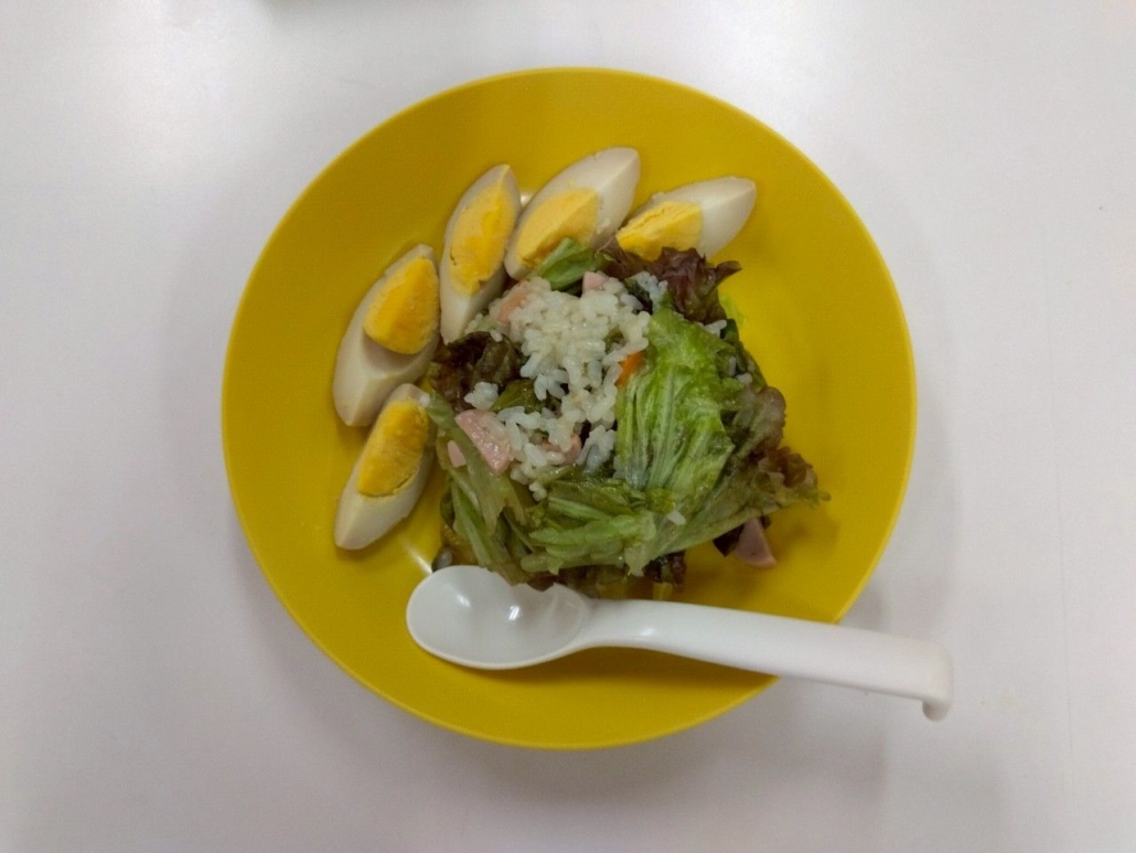 子供たちがおやつ作り手伝ってくれて、チャーハンをお皿によそってくれました。