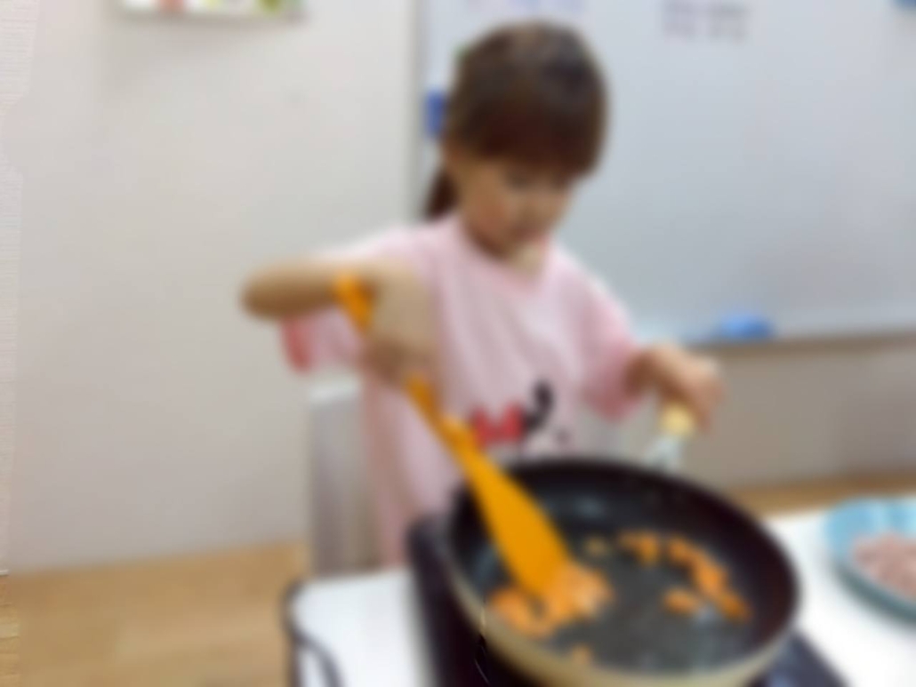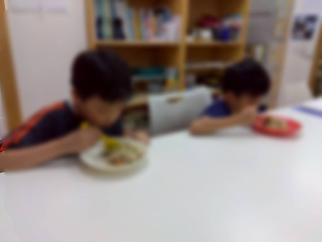 子供たちがおやつ作り手伝ってくれて、チャーハンをお皿によそってくれました。