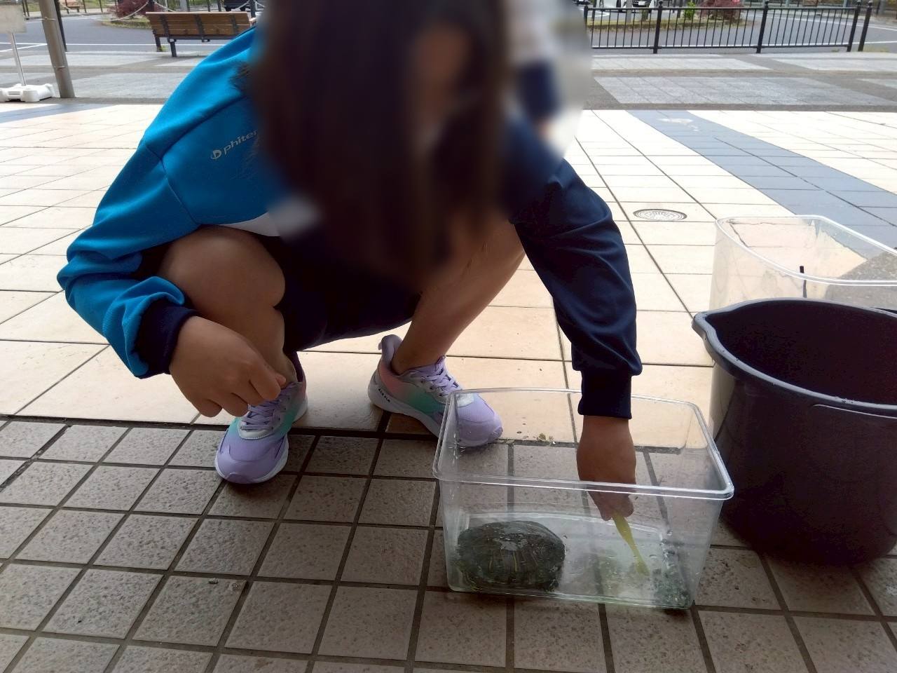 亀の水槽も、皆で協力してキレイにピカピカに掃除できました