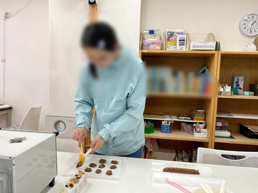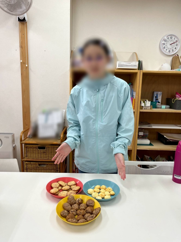 初めてのクッキー作り。3種類のクッキーをコーチと楽しく作りました。