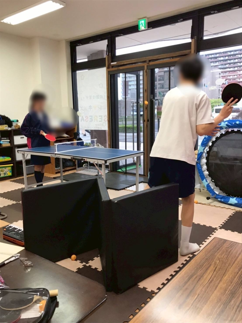 お菓子を食べた後には学習、卓球もやりラリーも続くようになってきました。