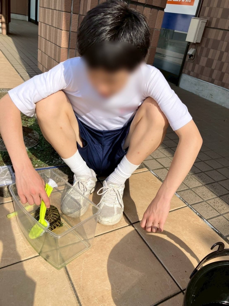 今日は亀の水槽の水交換を中学生チームで行ってくれました。