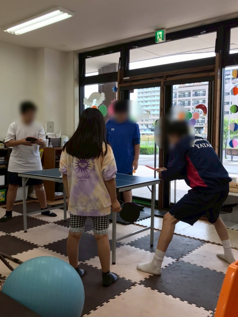 今日はシャボン玉をしたり、みんなで卓球をやりました