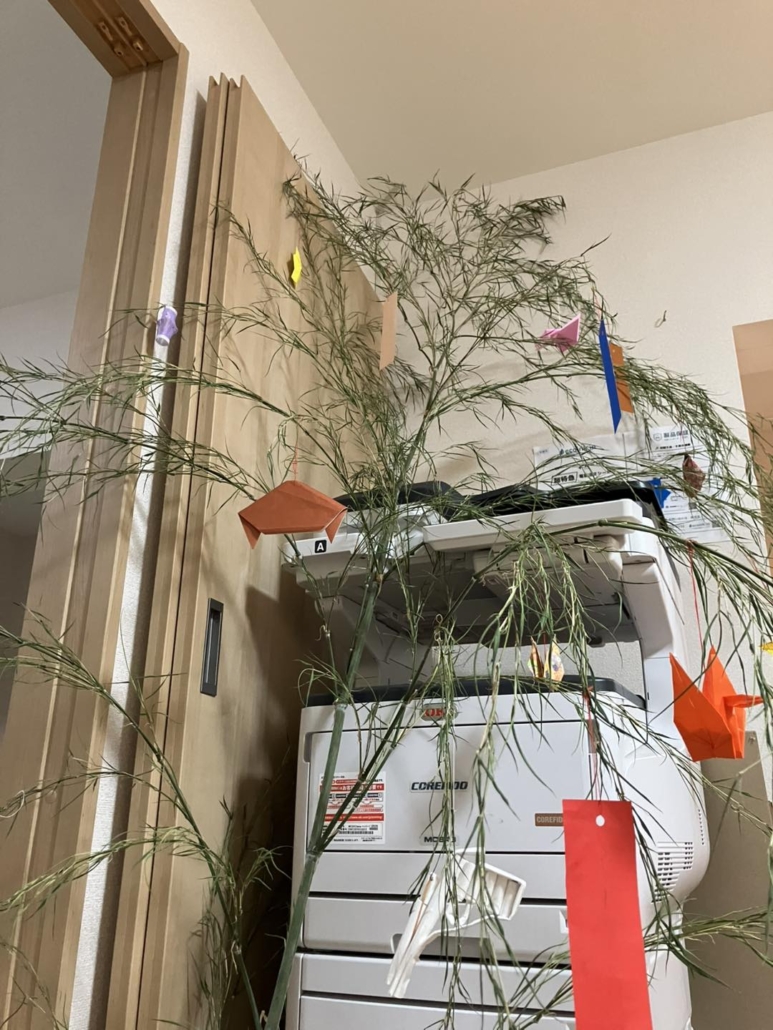 子供たちに短冊を書いてもらったり、折り紙でお飾りを作りました。