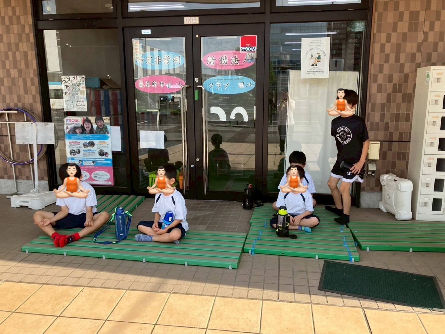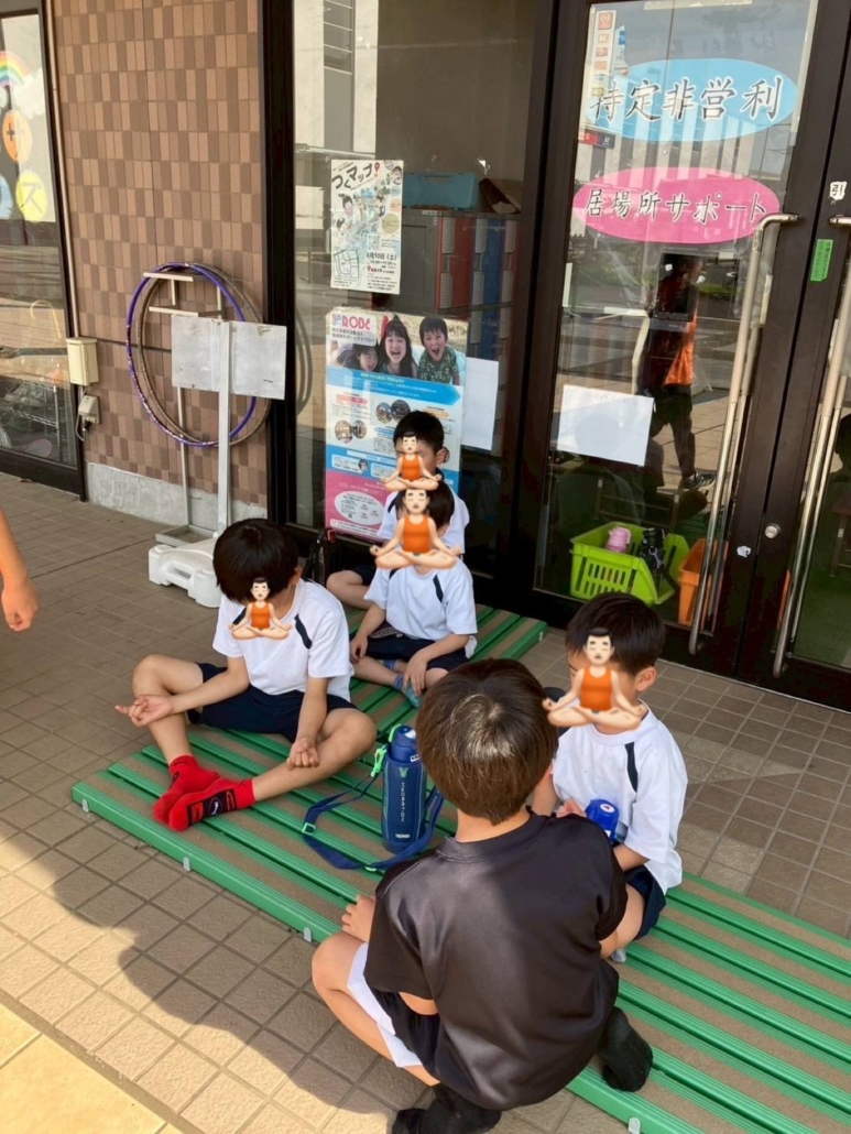 高学年の男の子が低学年の子達に瞑想のポーズを教えている姿も