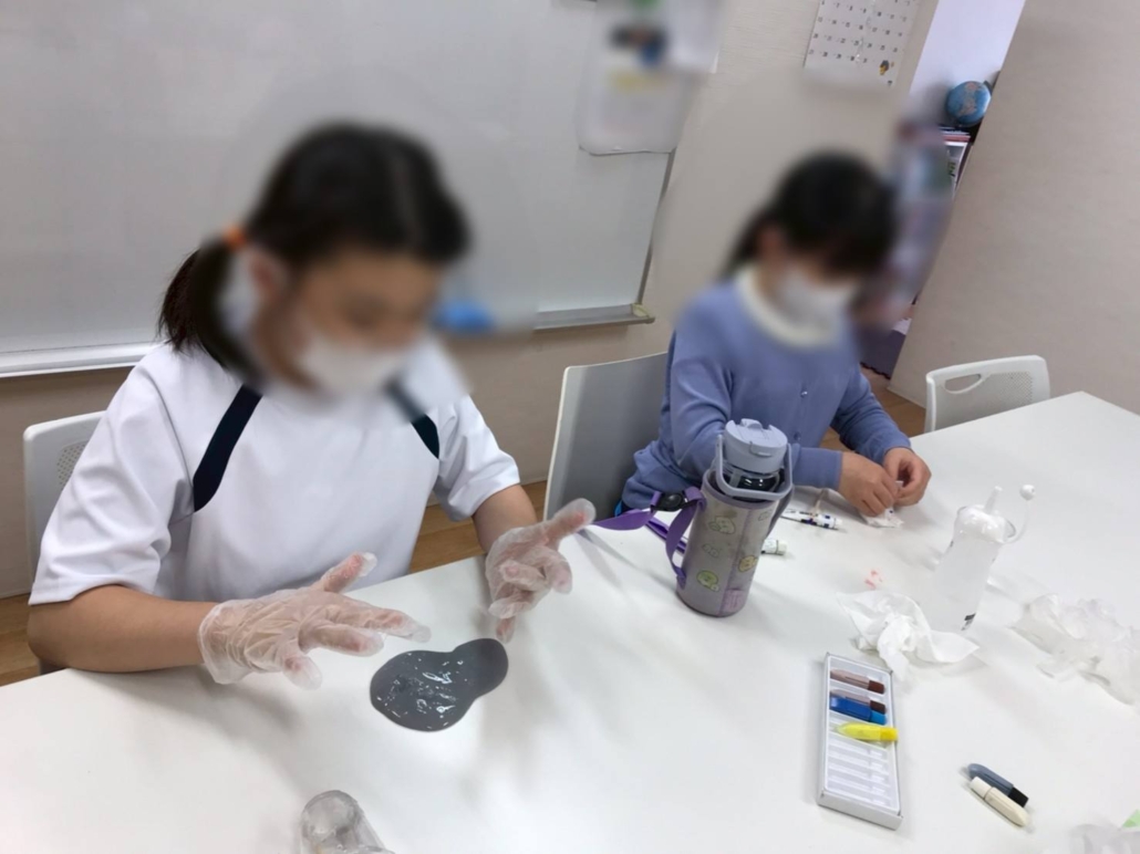 今日はみんなでスライム作りを楽しみました
