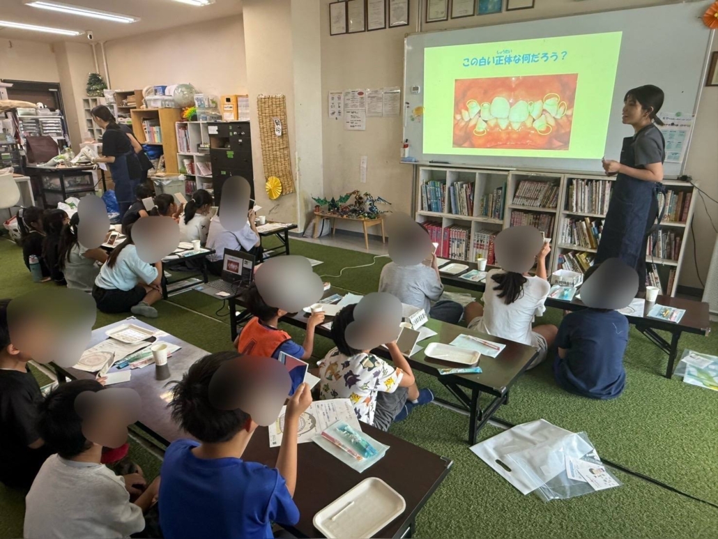 授業では、歯磨きの正しい方法や、デンタルフロスの使い方、食事が歯に与える影響など、