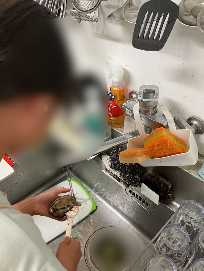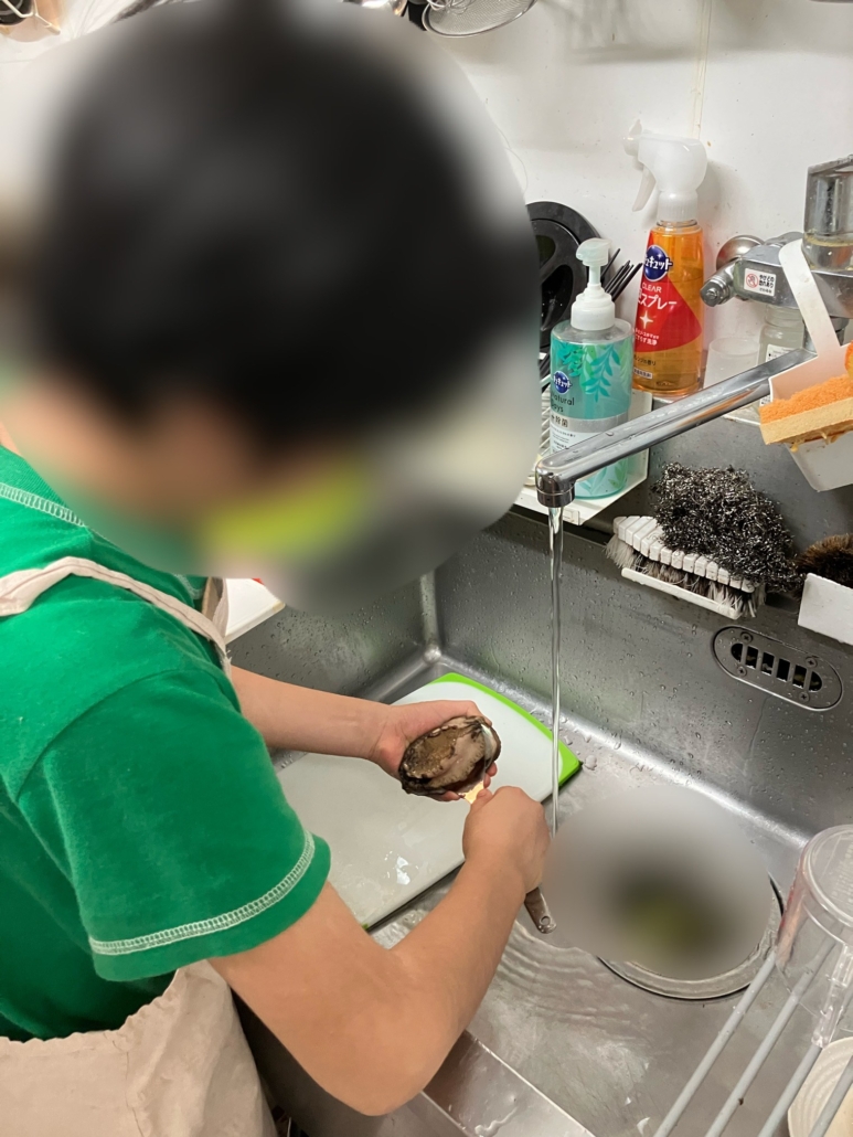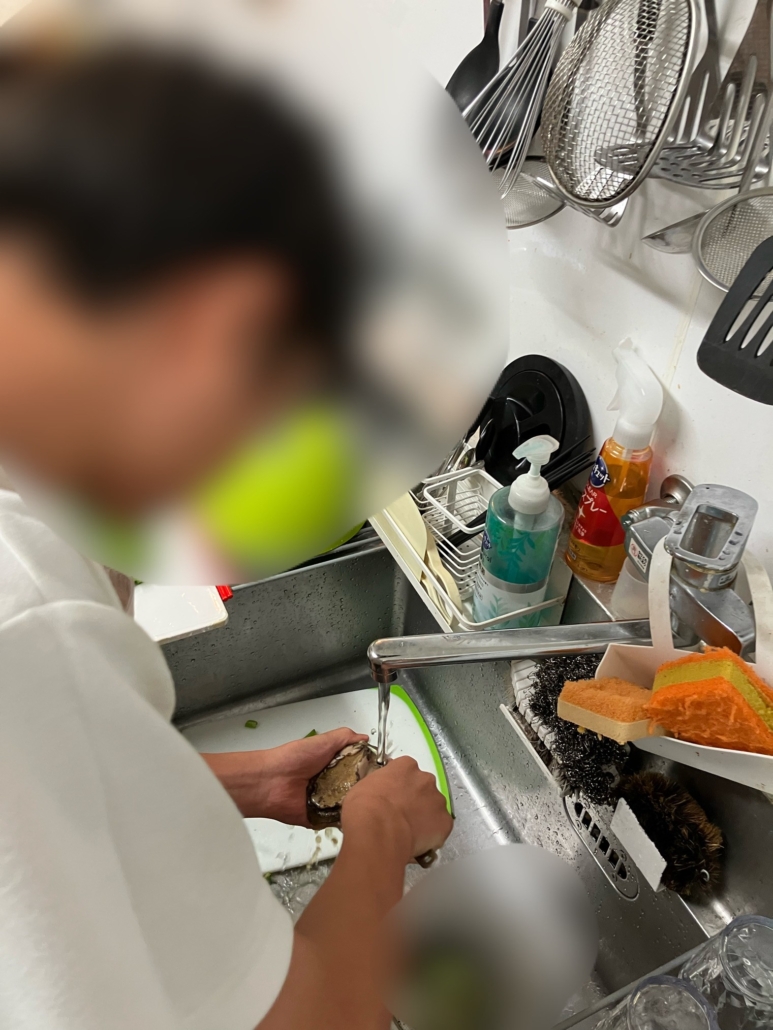 鮑を貝殻から外す作業にみんなで挑戦‼︎