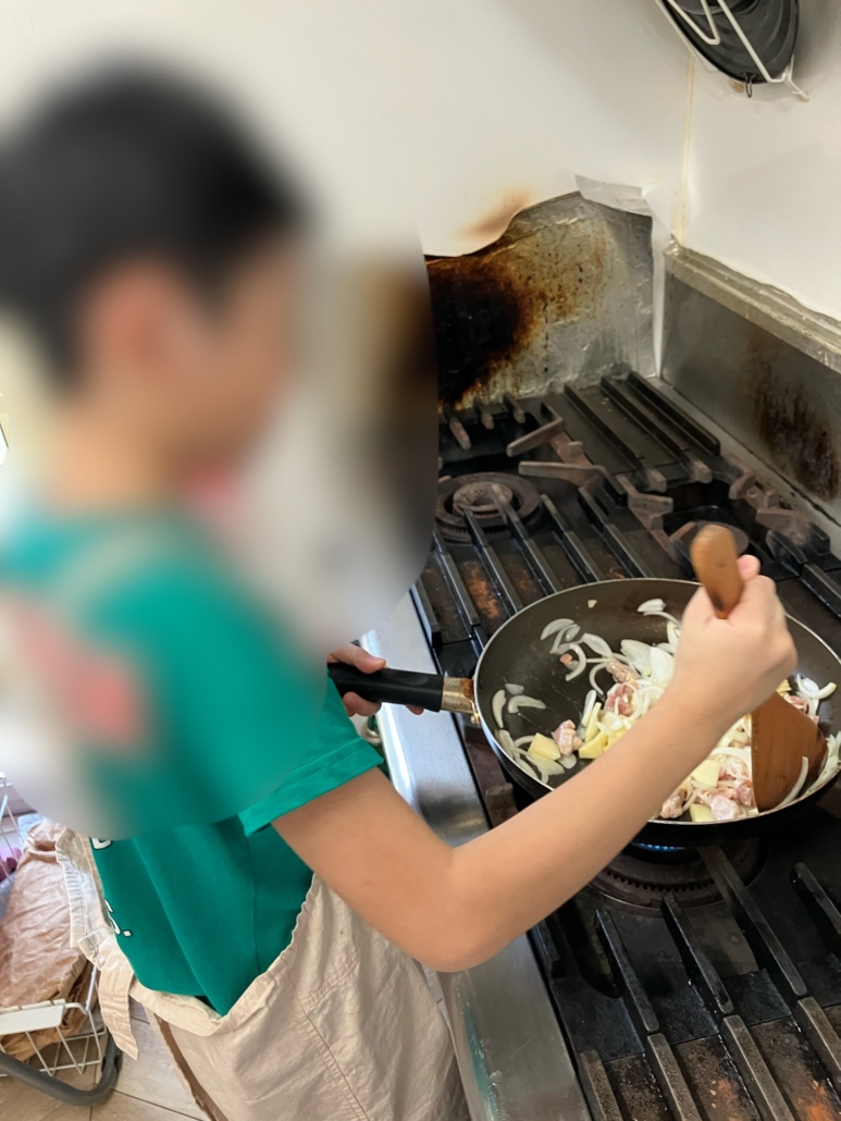 野菜を洗って、切って、炒めて、混ぜて…つ、疲れた…