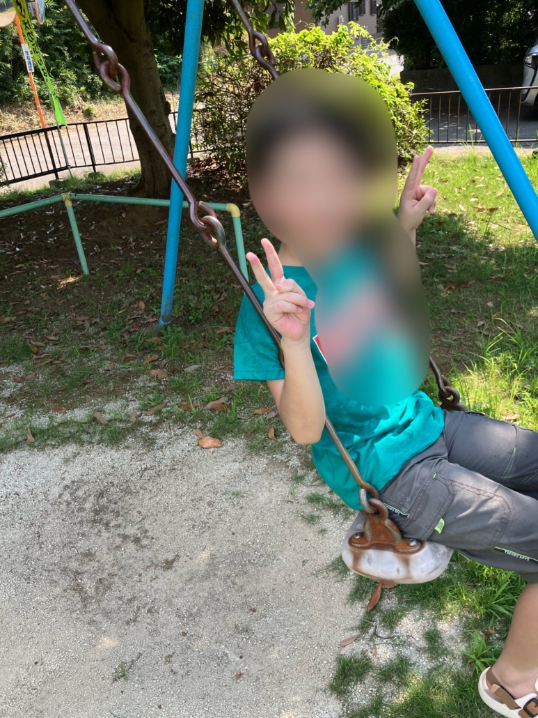 その後、服が濡れてしまったので、公園でブランコに乗って乾かそう!と公園へ。