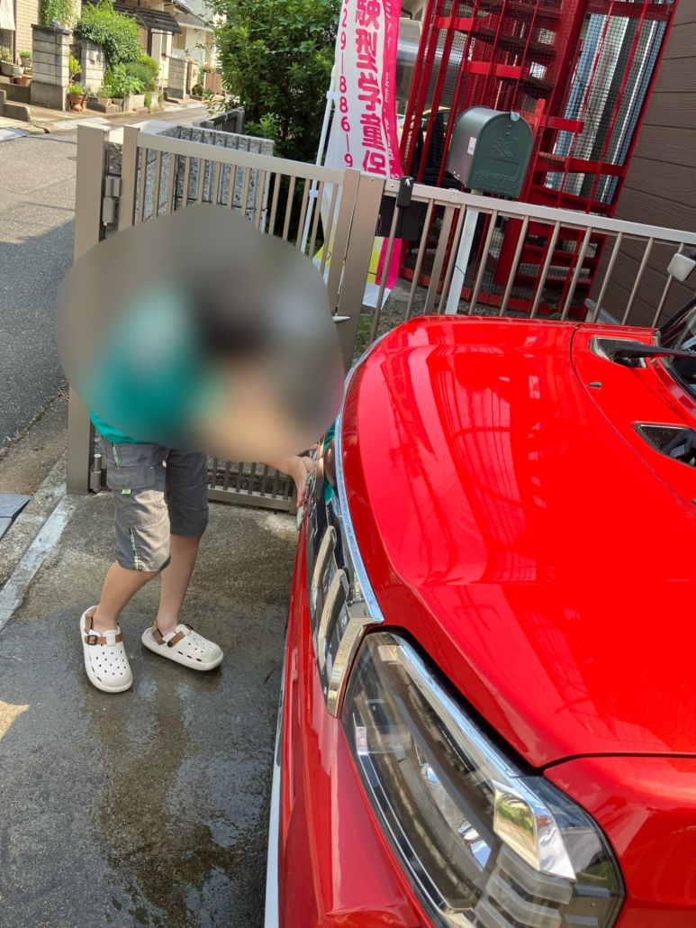 いつも頑張ってくれている送迎車に感謝の気持ちを込めて、洗車をしました