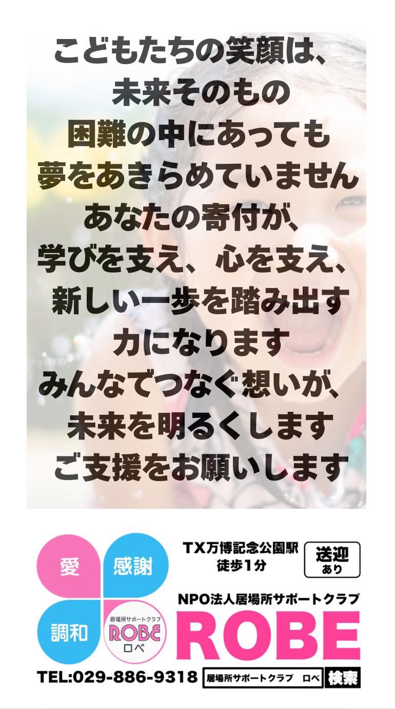 「居場所サポートクラブ ロベ」は茨城県つくば市で、低所得世帯の子どもたちを対象に 無料の学習支援塾 と 子ども食堂 を運営しています。(週4回/約100名の子どもたちが利用)
