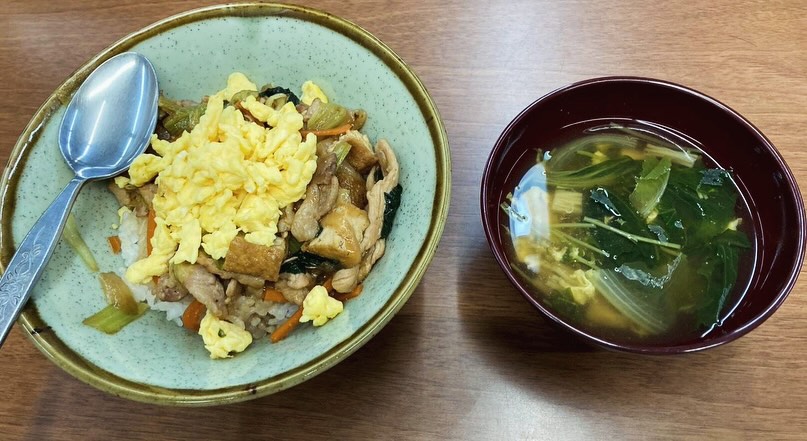 食事支援はBig smile project様による豚丼と玉子・レタスのスープ