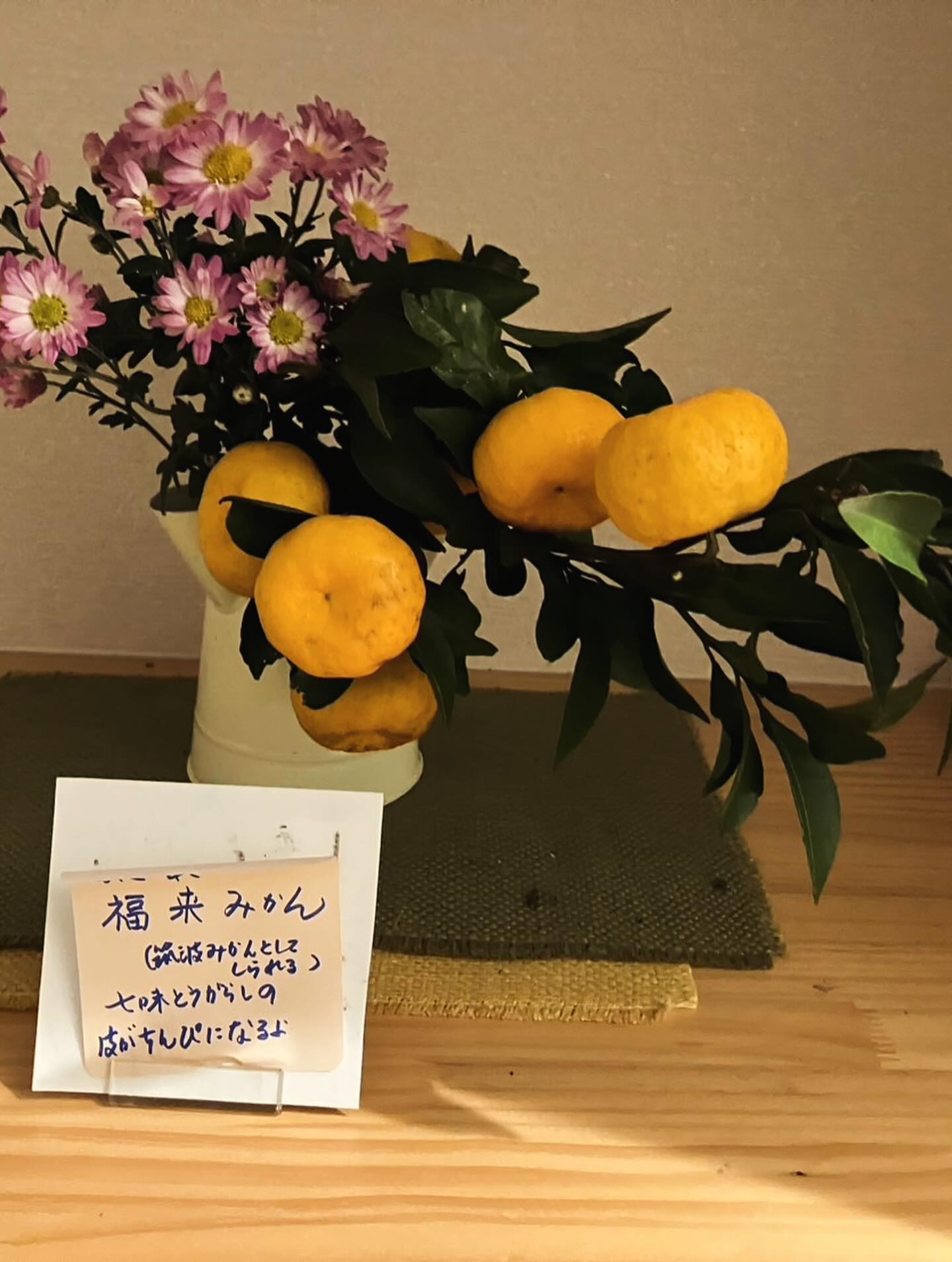 玄関の飾りは、つくばみかんとも呼ばれている『福来みかん』です