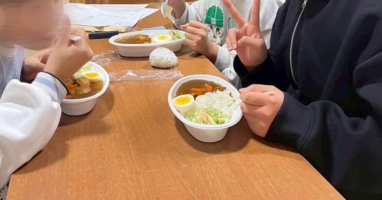 食事支援は竹園土曜ひろば様によるカレーライス、おにぎり。