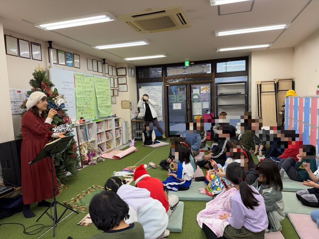 今日はクリスマスコンサートでクリスマスの曲を聴いたり、歌ったりして楽しい時間を過ごしました! 子どもたちもクリスマスの仮装をしたり、リズムに合わせて鈴を鳴らしたりして笑顔あふれる時間となっていました! -